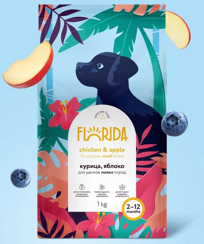 FLORIDA сухой корм для щенков малых пород, с курицей и яблоком (3 кг)